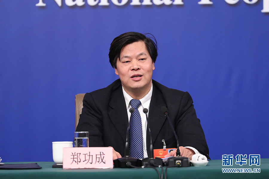 十三屆全國人大一次會議新聞中心于3月12日15時在梅地亞中心多功能廳舉行記者會,邀請十二屆全國人大財經委副主任委員尹中卿、教科文衛委副主任委員吳恒、環資委副主任委員袁駟、內司委委員鄭功成,全國人大常委會預算工委副主任劉修文、常委會辦公廳秘書局巡視員傅文杰就“人大監督工作”相關問題回答中外記者提問。圖為內司委委員鄭功成回答記者提問。新華網/中國政府網 攝