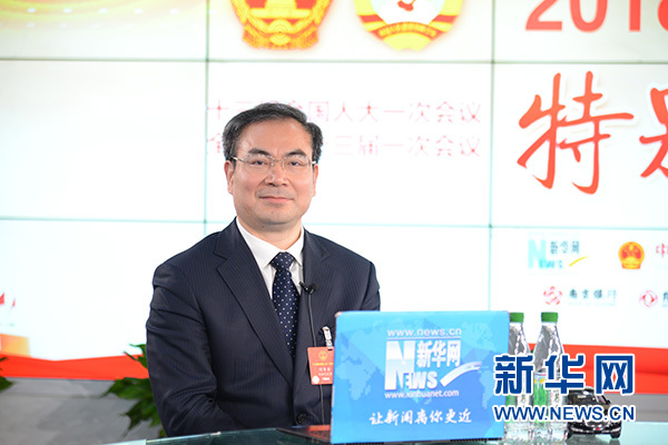 全國人大代表、張家界市市長劉革安做客新華網2018全國兩會特別訪談。新華網楊濛 攝