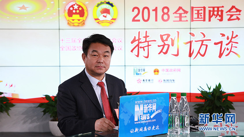 全國人大代表、江蘇百斯特投資集團有限公司董事長王強眾做客新華網(wǎng)2018全國兩會特別訪談 新華網(wǎng) 楊锘攝