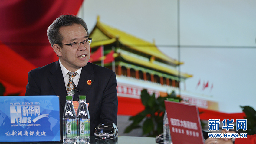圖為15日,全國(guó)人大代表、甘肅省酒泉市委書記吳仰東做客新華網(wǎng)2018全國(guó)兩會(huì)特別訪談。新華網(wǎng) 李相博攝