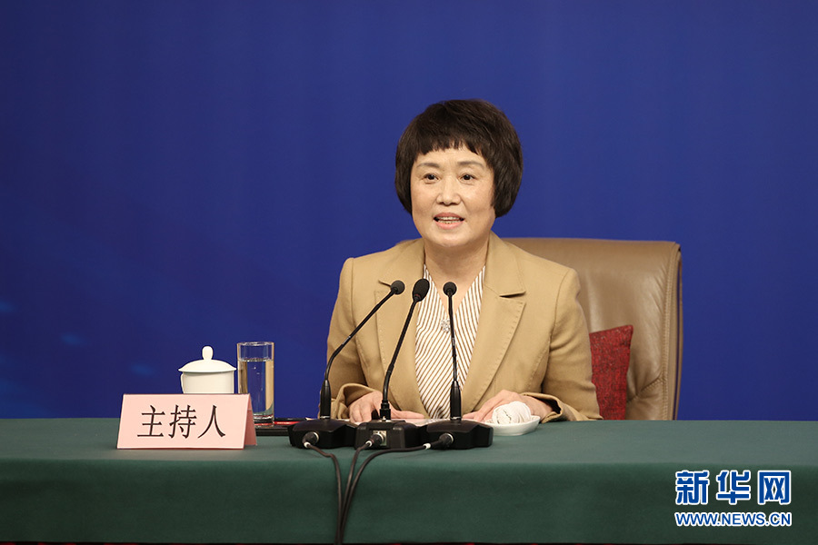 十三屆全國人大一次會議新聞中心3月17日(星期六)15時在梅地亞中心多功能廳舉行記者會,邀請環保部部長李干杰就“打好污染防治攻堅戰”相關問題回答中外記者提問。圖為記者會主持人。新華網/中國政府網 陳杰 攝