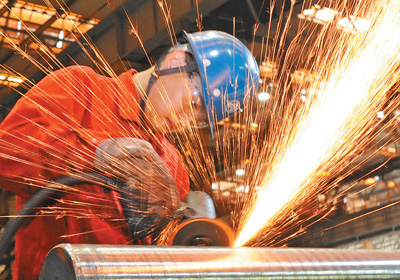 圖為遼寧大連特殊鋼制品有限公司員工在檢查修磨大棒材產品。劉德斌(人民視覺)