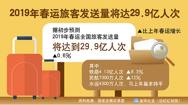 圖表:2019年春運旅客發送量將達29.9億人次 新華社發 邊紀紅 制圖
