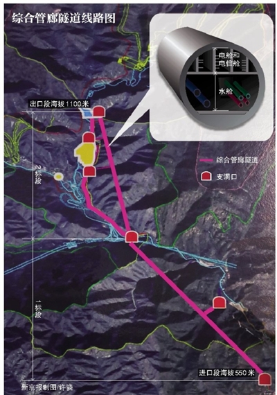怎樣把對(duì)生態(tài)環(huán)境的影響降到最低是施工隊(duì)面臨的另一項(xiàng)考驗(yàn)。在施工方案的選擇上,設(shè)計(jì)團(tuán)隊(duì)曾想過另外一種建設(shè)方案,但最終被否定。“最初的方案是在山坡上做溝渠,從山下把水運(yùn)送到山上,但這種方法只能用來運(yùn)水,而且要砍伐大量樹木,生態(tài)破壞嚴(yán)重。” 韓寶江說,采用地下綜合管廊的建設(shè)方式,不但可以同時(shí)輸送電力和水,而且伐樹少,占地面積小,能夠最大程度保護(hù)山體生態(tài)環(huán)境。為減少對(duì)野生動(dòng)物生活習(xí)性的影響,施工隊(duì)在爆破時(shí)也盡可能在白天進(jìn)行。