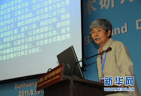2011年8月19日,在敦煌莫高窟舉行的文化遺產與數字化國際學術研討會上,敦煌研究院院長樊錦詩在作報告。? 新華社發