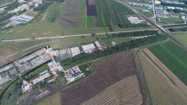 平改立工程K11公里道口航拍圖,可以看到,為了前往殯儀館,通過道口時唯一的選擇。(8月28日 航拍圖)達日罕攝