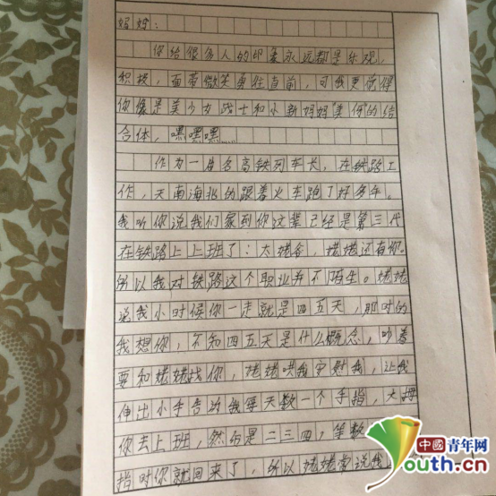 一年一度的春運又開始了,13歲的女孩小嘉琪早已習(xí)慣了媽媽不能在家的春節(jié)。小嘉琪的媽媽是哈大高鐵車隊的列車長。今年她給媽媽寫了一封信,這封信里有埋怨、有理解、更有女兒對媽媽的愛……不禁讓人淚目。
