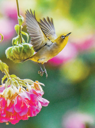 廣西南寧市近日氣溫最高達到21攝氏度,南湖公園的芙蓉花盛開,吸引了大量的鳥兒。彭 寰攝(影像中國)