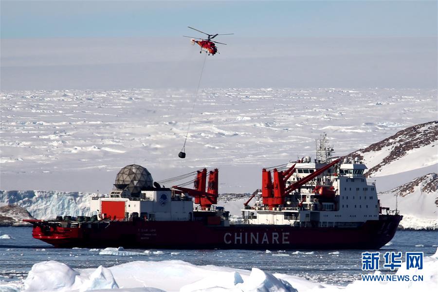新華社南極中山站2月9日電(記者 劉詩平)“雪龍”號(hào)極地考察破冰船9日抵達(dá)南極中山站,并于當(dāng)天開始用船載直升機(jī)“雪鷹12”向中山站吊運(yùn)燃油。