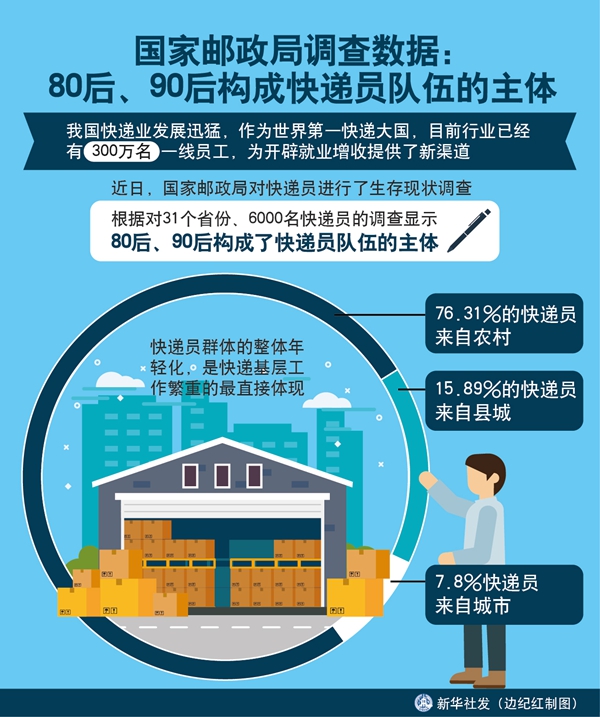 近日,國家郵政局對快遞員進行了生存現狀調查,根據對31個省份、6000名快遞員的調查顯示,80后、90后構成了快遞員隊伍的主體。快遞員群體的整體年輕化,是快遞基層工作繁重的最直接體現。76.31%的快遞員來自農村,15.89%的快遞員來自縣城,僅有7.8%來自城市。