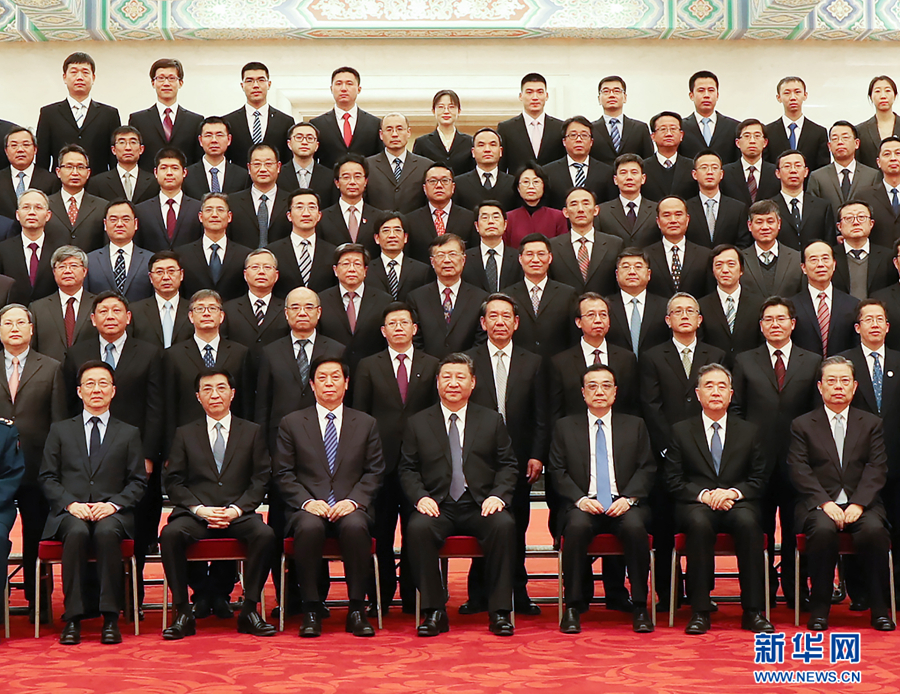 2月20日,黨和國家領導人習近平、李克強、栗戰書、汪洋、王滬寧、趙樂際、韓正等在北京人民大會堂會見探月工程嫦娥四號任務參研參試人員代表。 新華社記者鞠鵬攝