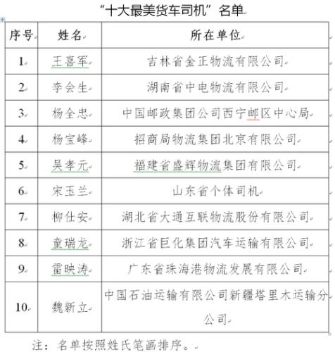 經(jīng)活動(dòng)組委會(huì)審核、專家初評(píng)、公開展示、網(wǎng)絡(luò)投票、專家終選等程序,最終推選出丁志健等96名個(gè)人為“最美貨車司機(jī)”,王喜軍等10名個(gè)人為“十大最美貨車司機(jī)”,浙江省交通運(yùn)輸廳等12家單位為組織貢獻(xiàn)單位。