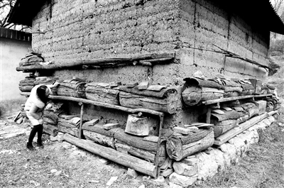 道路的盡頭是一戶被“圓木棒棒”包圍的人家。這家主人姓謝,祖祖輩輩生活在這里,幾乎沒有離開過身后的大山。滿山的核桃樹和環(huán)繞自家房屋的蜂巢,是老謝一家的主要收入來源。