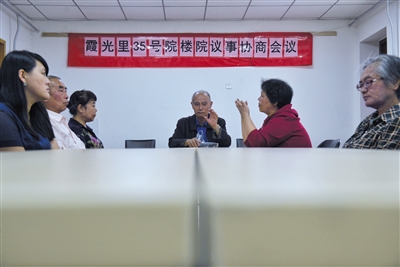 2016年5月,朝陽區霞光里,居民在居民議事廳討論。資料圖片/新京報記者 王嘉寧 攝