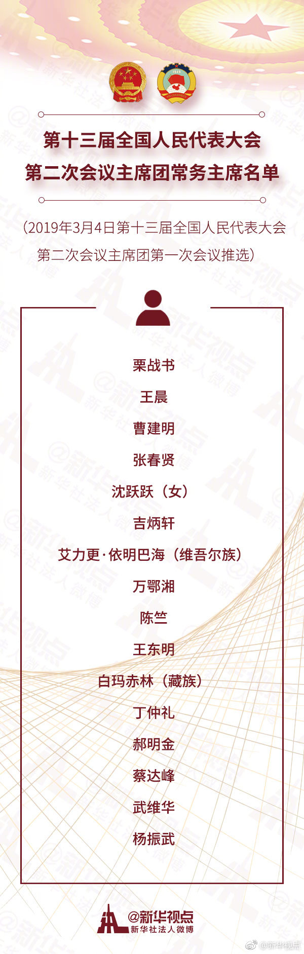(兩會受權發布)第十三屆全國人民代表大會第二次會議主席團常務主席名單-新華網