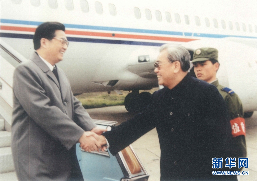 1993年,胡錦濤同志與毛致用同志在一起。 新華社發