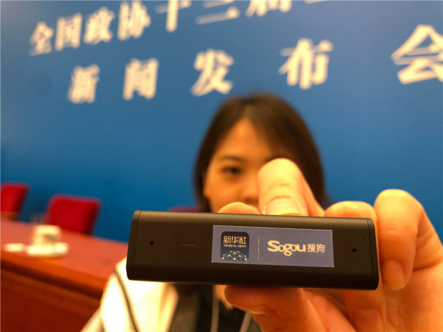 ↑3月3日,新華社記者在兩會報道中使用智能錄音筆。