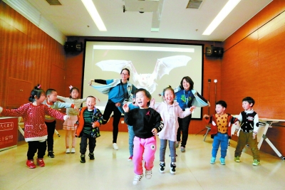 為了加強與孩子的互動,秀怡設計了許多游戲環節,當然這些游戲都和故事相關。“孩子們,蝙蝠是怎么飛的呀?”在一次活動中,秀怡張開雙臂,擺出了模擬蝙蝠飛行的姿勢。她還用各種姿勢模仿出蝙蝠的超聲波,孩子們紛紛參與到游戲中來,聽完了故事,也學到了知識。“孩子都是喜歡玩游戲的,游戲激起了他們的興趣,他們對故事自然就會感興趣。”