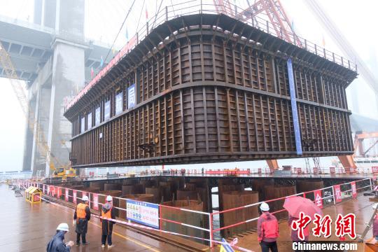 泉州灣跨海大橋主墩承臺(tái)長(zhǎng)40.5米、寬26.5米、高6米。為實(shí)現(xiàn)主墩安全、高效施工,承臺(tái)施工的擋水、擋浪、模板結(jié)構(gòu)物采用單壁鋼吊箱結(jié)構(gòu),它的作用是通過(guò)四面壁板和后期澆筑的封底混凝土形成圍堰,為承臺(tái)施工提供干作業(yè)環(huán)境。“就像在海中放置一個(gè)巨型‘箱子’,將‘箱子’底部和海中樁基相連并固定,然后向底部澆筑混凝土,并抽干里面的海水,這樣就可以在海中形成一個(gè)小型‘人工島’,使海洋施工環(huán)境變?yōu)殛懙丨h(huán)境,方便承臺(tái)施工。”項(xiàng)目總工張延河解釋道。