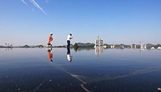 莫高窟15余公里外,有一個形似沙丘、又如流水的土黃色流線型建筑。游客在這里用數字化手段了解莫高窟的前世今生,再去窟區領略歷史的風姿。