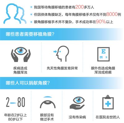 據(jù)統(tǒng)計(jì),我國等待接受角膜移植的患者有200多萬,但因供體角膜缺乏,全國各大醫(yī)院每年完成的角膜移植手術(shù)僅有不到8000例。