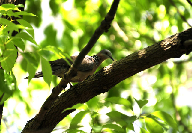 記者居住的小區里鳥也很多,陽臺下面一棵廣玉蘭樹上,一對珠頸斑鳩已經安家了很多年。經常看見脖子上好像戴著一圈珍珠項鏈的珠頸斑鳩,結伴到小區草地上覓食,熟悉得好像小區里的老鄰居。