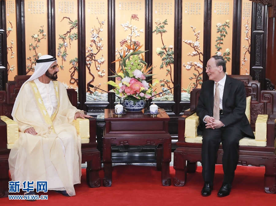 新華社北京4月26日電(記者溫馨)國家副主席王岐山26日在釣魚臺國賓館會見阿聯酋副總統兼總理、迪拜酋長穆罕默德。