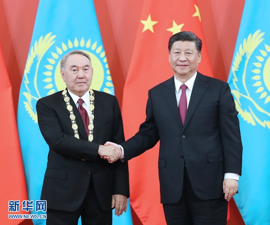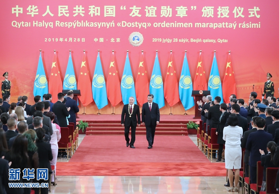 新華社北京4月28日電(記者白潔、馬巖)國家主席習近平28日在人民大會堂中央大廳為哈薩克斯坦首任總統(tǒng)納扎爾巴耶夫舉行“友誼勛章”頒授儀式。
