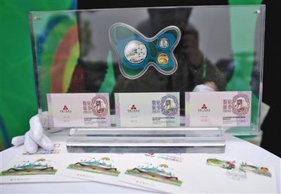 4月29日,世園會紀念郵票、首日封、紀念幣首發。新京報記者 鄭新洽 攝