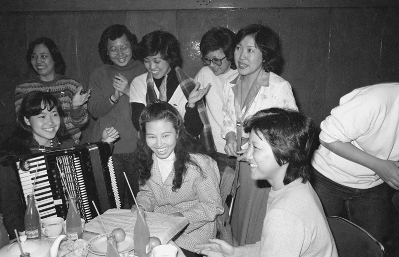 中、新兩國(guó)演員聯(lián)歡? 1983年3月19日,新加坡佳音合唱團(tuán)的演員同中國(guó)歌劇演員在北京民族文化宮舉行聯(lián)歡。這是兩國(guó)演員在一起共唱中國(guó)歌曲《年輕的朋友來(lái)相會(huì)》。 新華社記者楊慎和攝