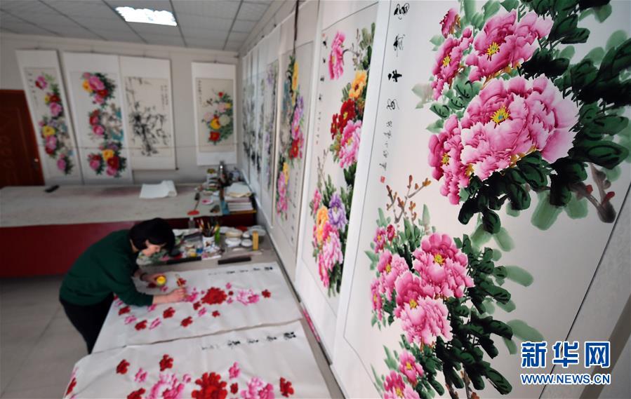 作畫(huà)近30年的郭亞修認(rèn)為鄉(xiāng)土地域和人文環(huán)境成就了平樂(lè),“平樂(lè)人愛(ài)牡丹、畫(huà)牡丹,牡丹寓意富貴、吉祥,平樂(lè)就從牡丹里討到了名氣和財(cái)氣。” 如今,平樂(lè)社區(qū)有千余名農(nóng)民畫(huà)家以畫(huà)牡丹為生。