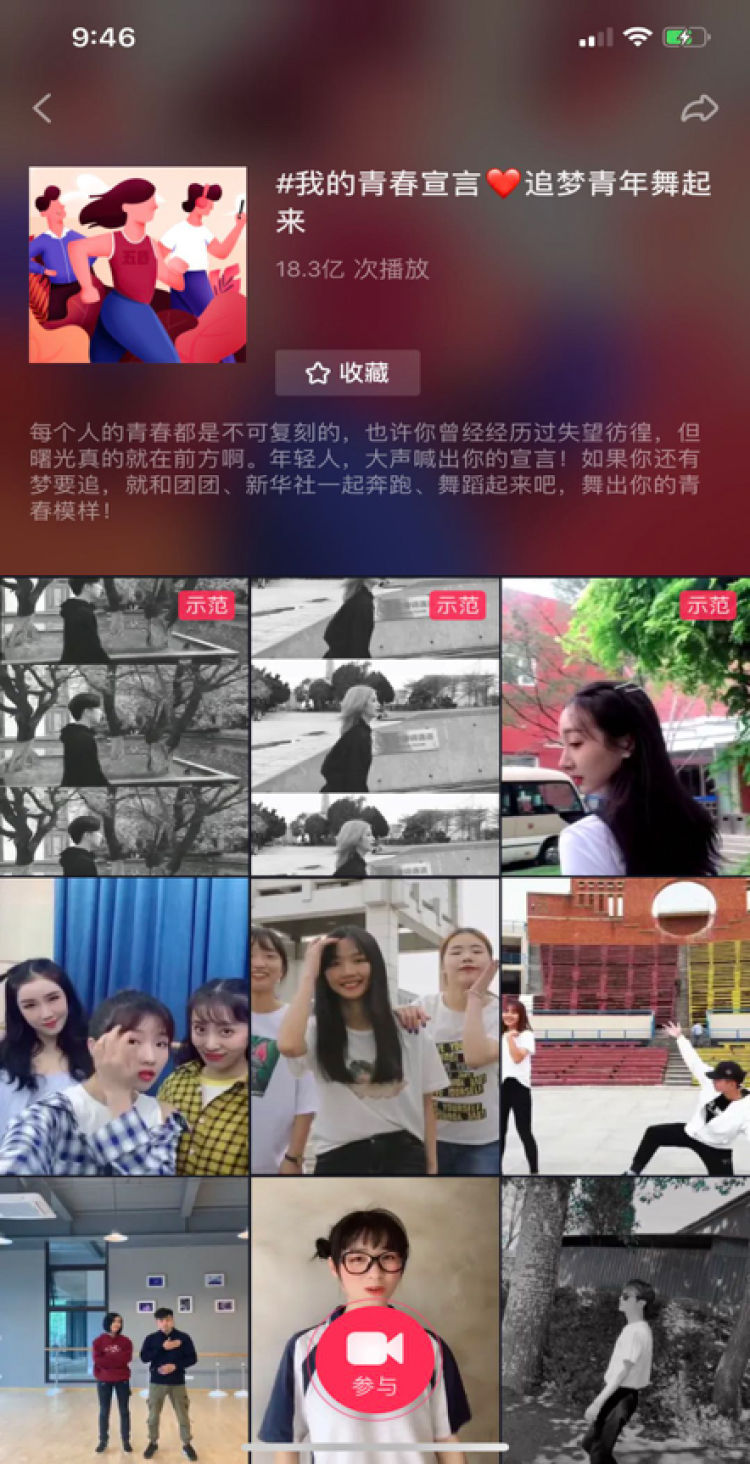 為紀念五四運動100周年,新華社全媒報道平臺聯合團中央開設 “我的青春宣言?追夢青年舞起來”話題。