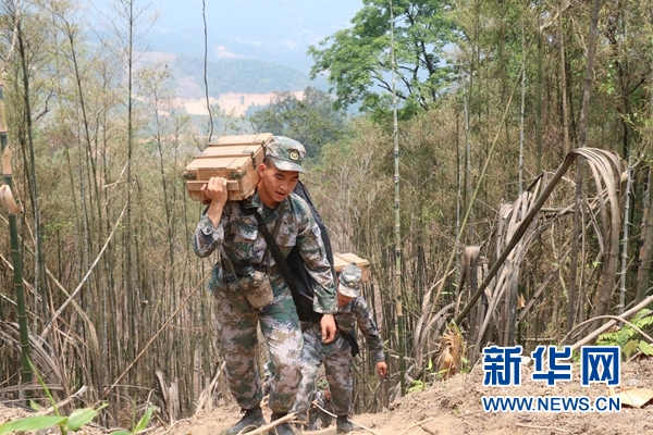 在云南麻栗坡,杜富國向雷場外轉運炸藥(2015年4月26日攝)。?新華社發(黃巧 攝)