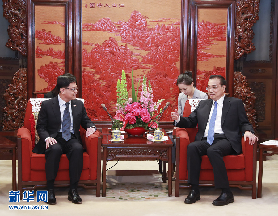 5月23日,國務(wù)院總理李克強(qiáng)在北京中南海紫光閣會見新加坡副總理兼財政部長王瑞杰。新華社記者 龐興雷 攝