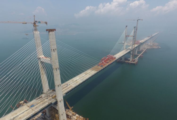 6月5日,福平鐵路平潭海峽公鐵兩用大橋元洪航道橋主橋成功合龍。(新華社記者林善傳 攝)