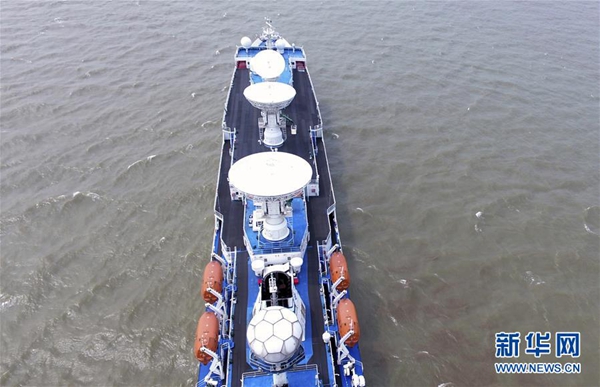 新華社南京6月8日電(記者 劉詩平、李雨澤)8日9時,遠望3號遠洋航天測量船一聲長鳴,駛出中國衛星海上測控部碼頭,航向南太平洋某預定海域執行衛星海上測控任務。