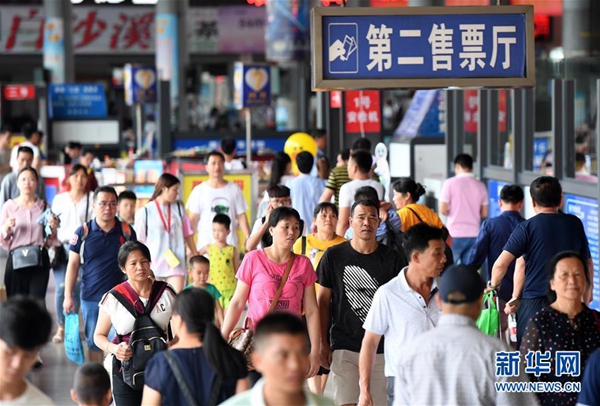 6月9日,在廣西南寧市埌東汽車站,旅客進入候車室。當日是端午小長假最后一天,廣西南寧市客運站迎來客流返程高峰。新華社記者 陸波岸 攝