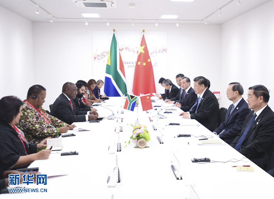 6月28日,國家主席習近平在大阪會見南非總統(tǒng)拉馬福薩。 新華社記者 龐興雷 攝