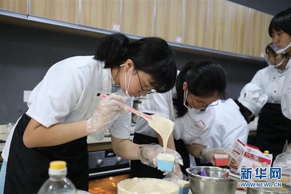 廣州市番禺區(qū)實(shí)驗(yàn)中學(xué)的學(xué)生在上蛋糕烘焙課(6月3日攝)。新華社記者 李嘉樂(lè) 攝