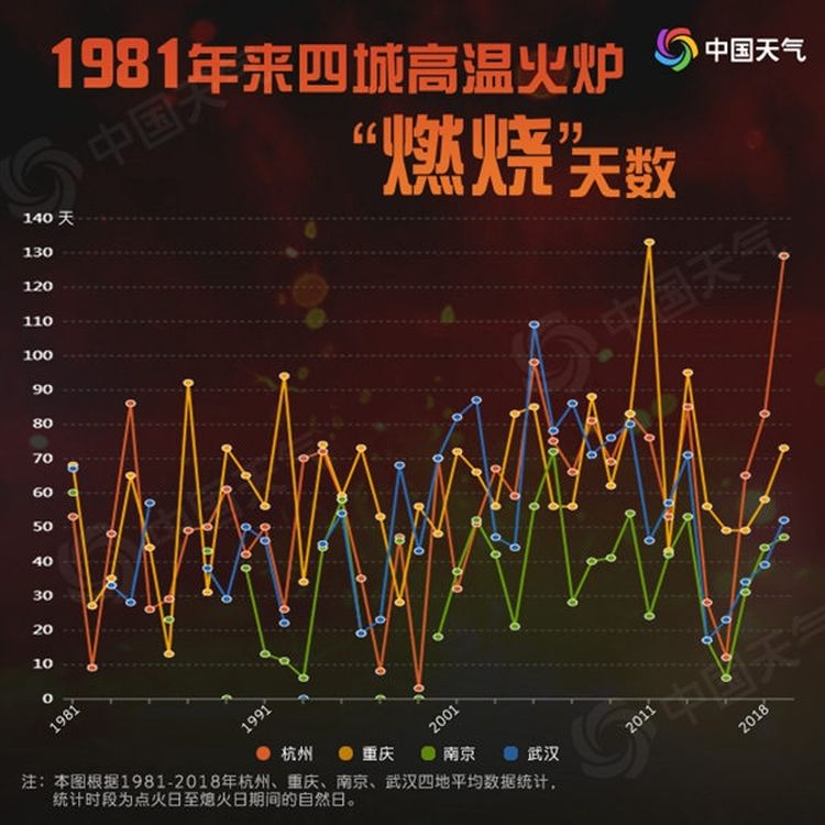 從1981年至2018年的平均數據統計來看,北方火爐“點”得早“熄”得也早,相比之下,江南華南火爐耐力更足,“燃燒”時間更長,往往9月才最后“熄火”。