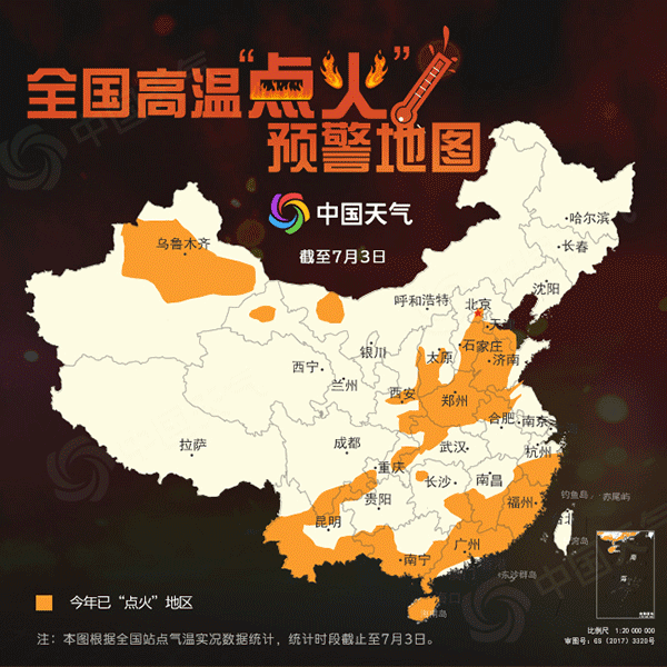 截至7月3日,華南地區、云南、華北南部、黃淮地區及新疆中北部地區的均已“點火”,與常年同期已“點火”地區大體重合。