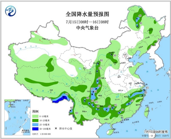7月17日08時至18日08時,黃淮西部、江淮東部、江漢大部、西南地區(qū)東部、四川南部、西藏東南部等地部分地區(qū)有中到大雨,其中,四川東北部、湖北北部、河南南部等地部分地區(qū)有暴雨,局地大暴雨。