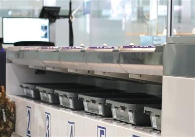 記者注意到,通道的X光機前并沒有安檢員。于暢洋介紹,通道采取了后臺遠程判圖的模式,可實現多個安檢員同時對多條通道進行X光機圖像的處理。高效安檢通道是首次在國內應用“集中判圖”技術的旅客安檢通道。