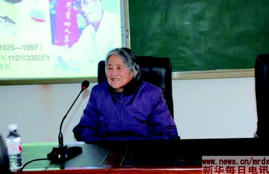 ▲這是李玉安的老伴在給學生講述李玉安的故事?!⌒氯A社發