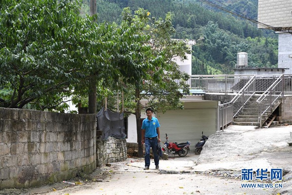 楊杰興在廣西樂(lè)業(yè)縣百坭村走訪(8月1日攝)。新華社記者 周華 攝