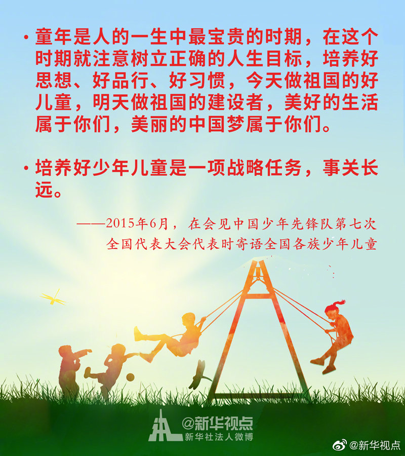 少年兒童是祖國的花朵,民族的希望。幼有所育,讓每一名少年兒童都能伴隨著時(shí)代的腳步茁壯成長,是全社會共同的心愿。習(xí)近平總書記始終關(guān)心少年兒童的身體健康和成長成才。黨的十八大以來,習(xí)近平總書記這樣說?