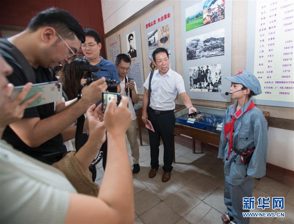 8月4日,來自湖北省麻城市乘馬中學的“小小講解員”在乘馬會館為記者講述紅色歷史故事。新華社記者 肖藝九 攝