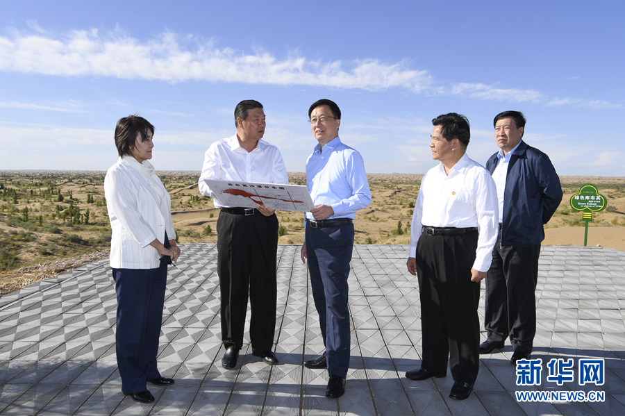 8月26日至27日,中共中央政治局常委、國務院副總理韓正到內蒙古自治區(qū)鄂爾多斯市,就庫布其沙漠防沙治沙和生態(tài)建設情況進行調研。這是8月27日,韓正來到位于庫布其沙漠腹地的沙峰綠谷,實地查看科技手段治沙成果。新華社記者 張領 攝