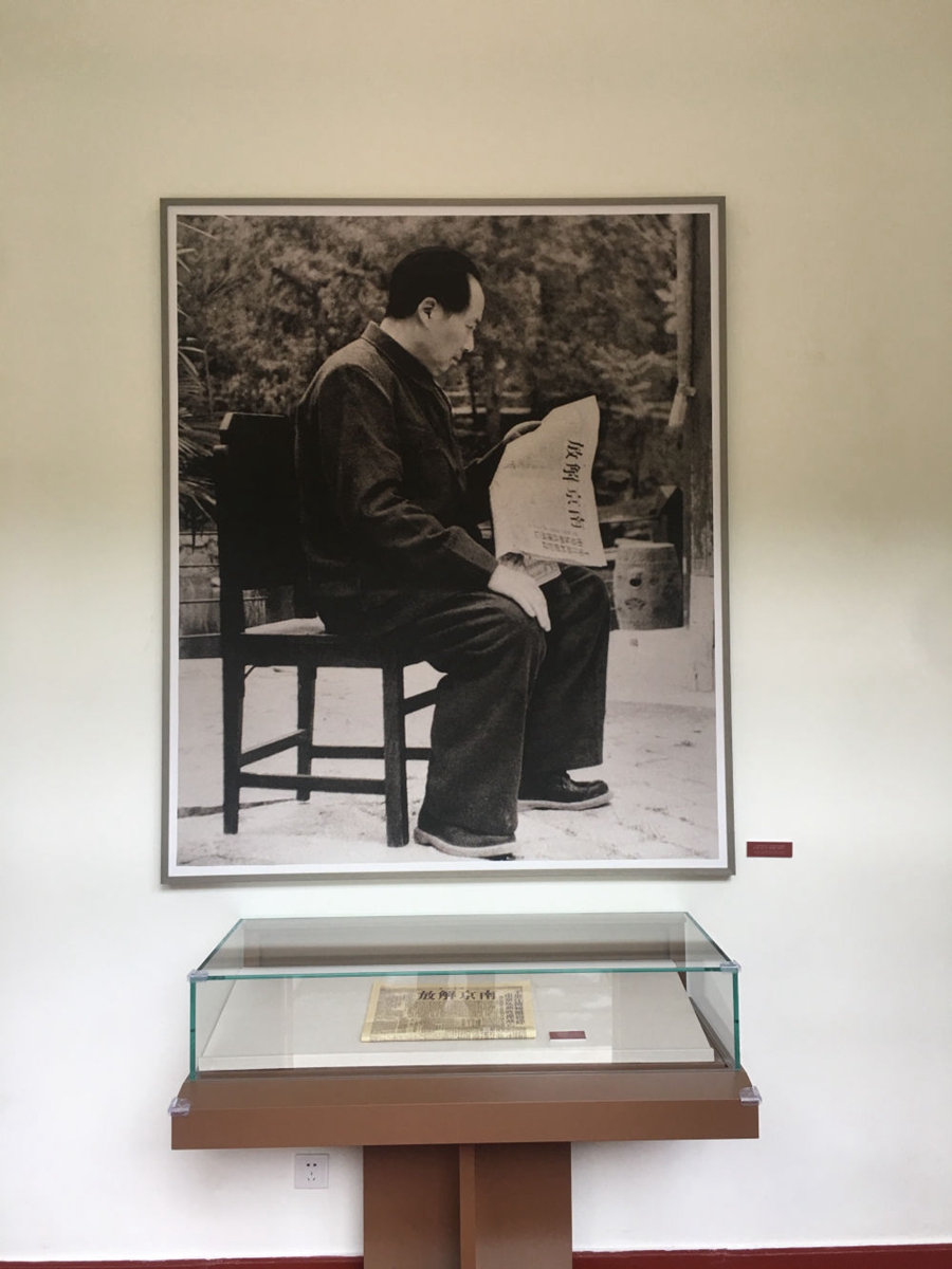雙清別墅里,簡樸的桌椅家具,墻上的地圖,桌上的紙筆書報,還原著革命勝利前夜,開國領袖在此運籌帷幄、決勝千里的場景;六角紅亭前,當年毛主席坐在木椅上閱讀《進步日報》“南京解放”報道的畫面,如在眼前。