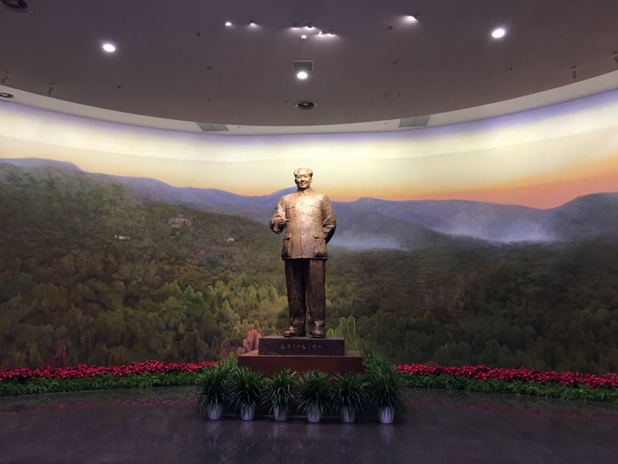 展覽序廳,矗立著高達3.8米的毛澤東主席雕塑,兩側的大型浮雕,刻畫了1949年的兩大標志性歷史事件:
